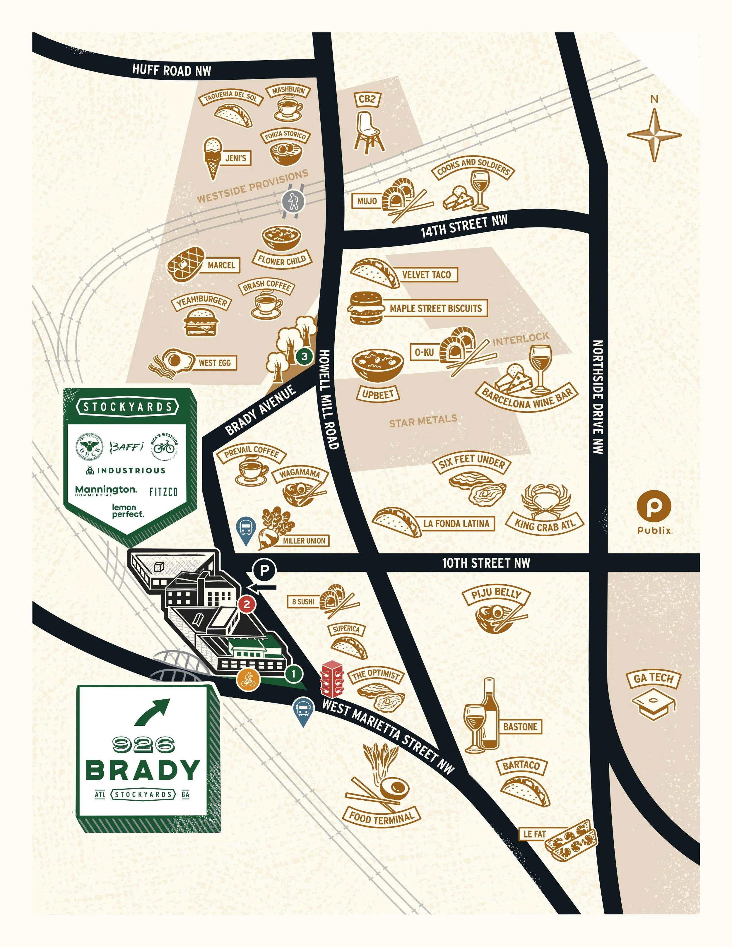 926 Brady is a full-building office HQ opportunity primely located in the Stockyards development of historic West Midtown. Positioned directly in front of West Midtown’s railway, central to many favs of the ATL foodie scene, and easily accessible to I-75, myself and team at Nimble. worked to brand this industrial-chic, one-of-a-kind offering in partnership with Clarion and Westbridge. My scope within this project was spearheading branding, Marketing Collateral, and a supporting website to act as this building’s official launch to market.